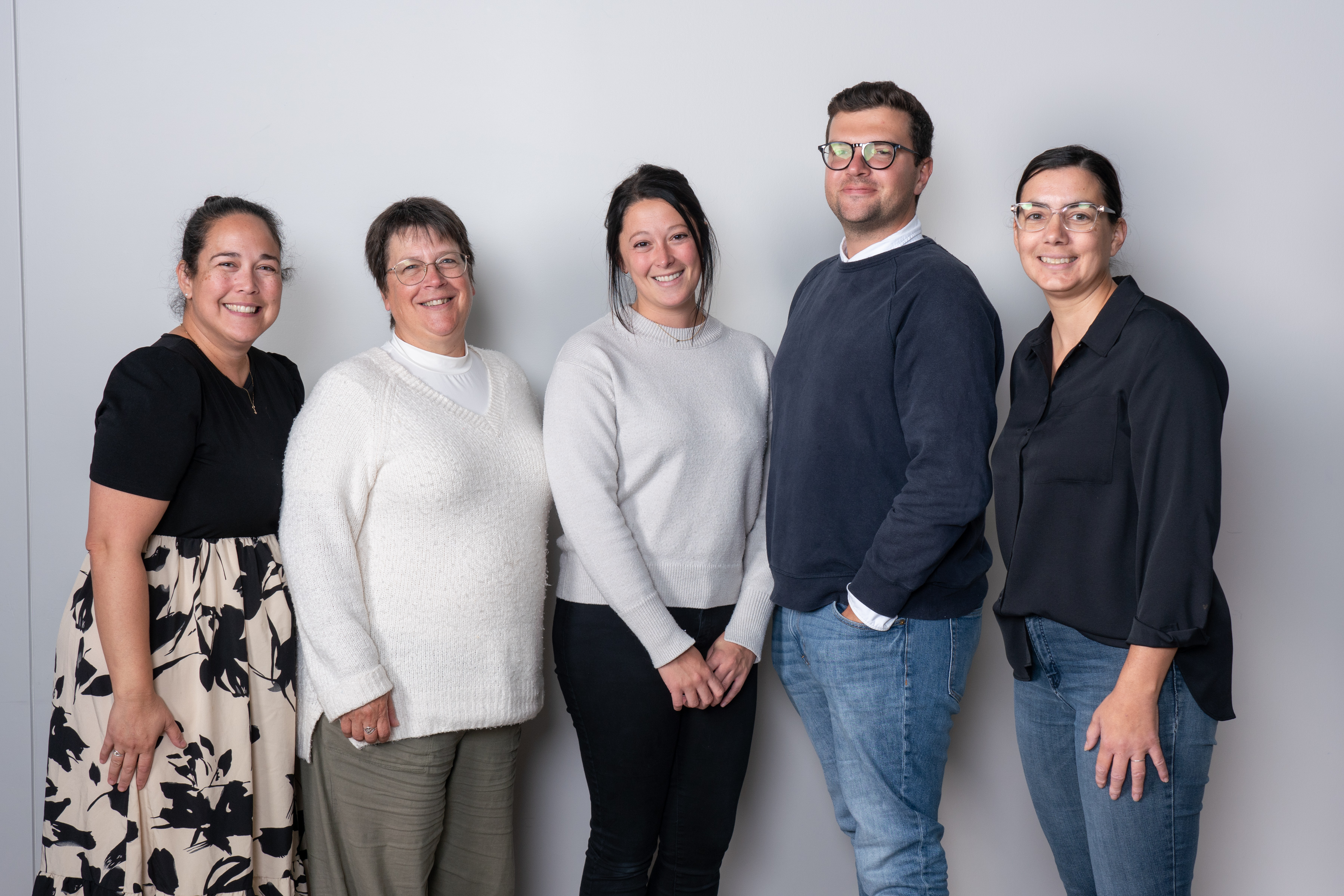 Sur la photo : Guylain Boudreau, Alexandra Boudreau, Marie-Michelle Leblanc, Mélanie Huot, Mélissa Lapierre et Noémie Déraspe. Absent·es sur la photo : Gérald Lapierre, Swany Péquin, Ana Nunez Gonzalez et Annabelle Arseneau.